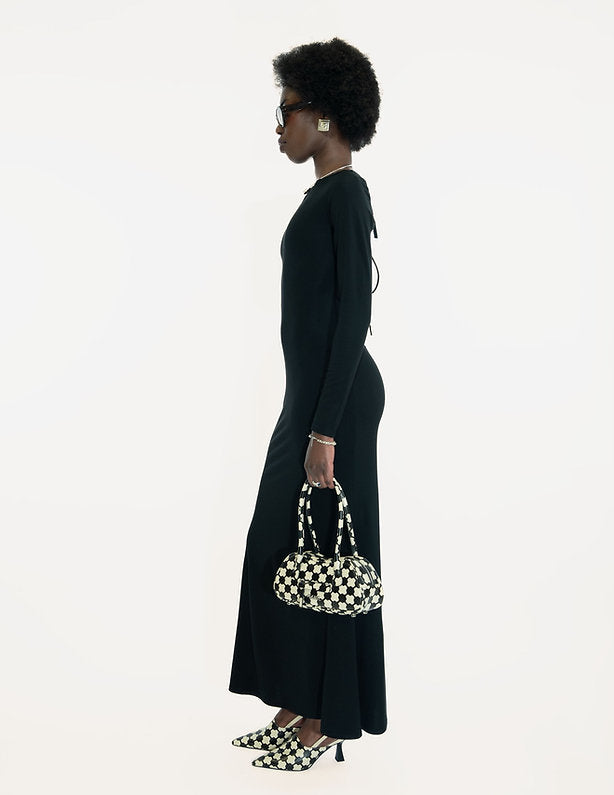 Mona Dress is crafted from organic cotton fused with high tech fabric to create a body accentuating silhouette. Formulated from fluid medium weight fabric for full coverage, but has a light weight feel. Adorned with criss cross lace up back detailing.